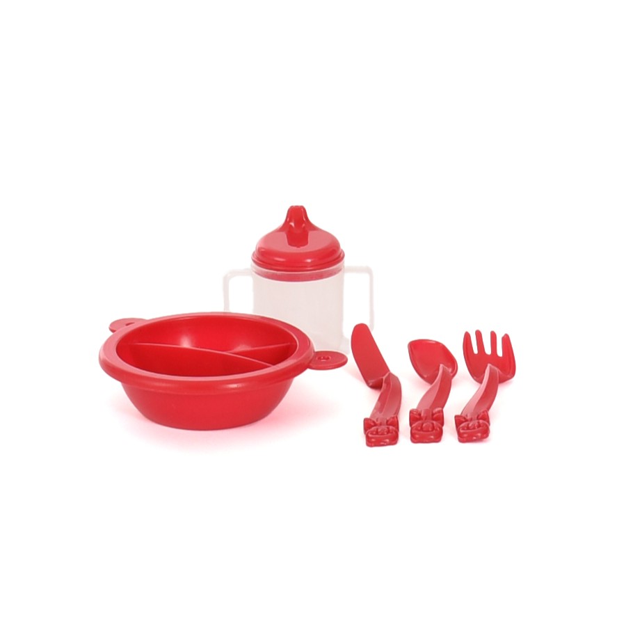 - Tazón de comida, cuchillo, tenedor y cuchara: Todo lo necesario para la hora de comer.