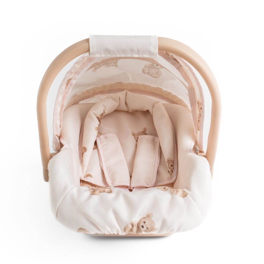 Con un diseño inspirado en un asiento de auto real, este accesorio fomenta el juego imaginativo, el cuidado y la creatividad, convirtiéndose en un imprescindible para las salidas y juegos de rol.