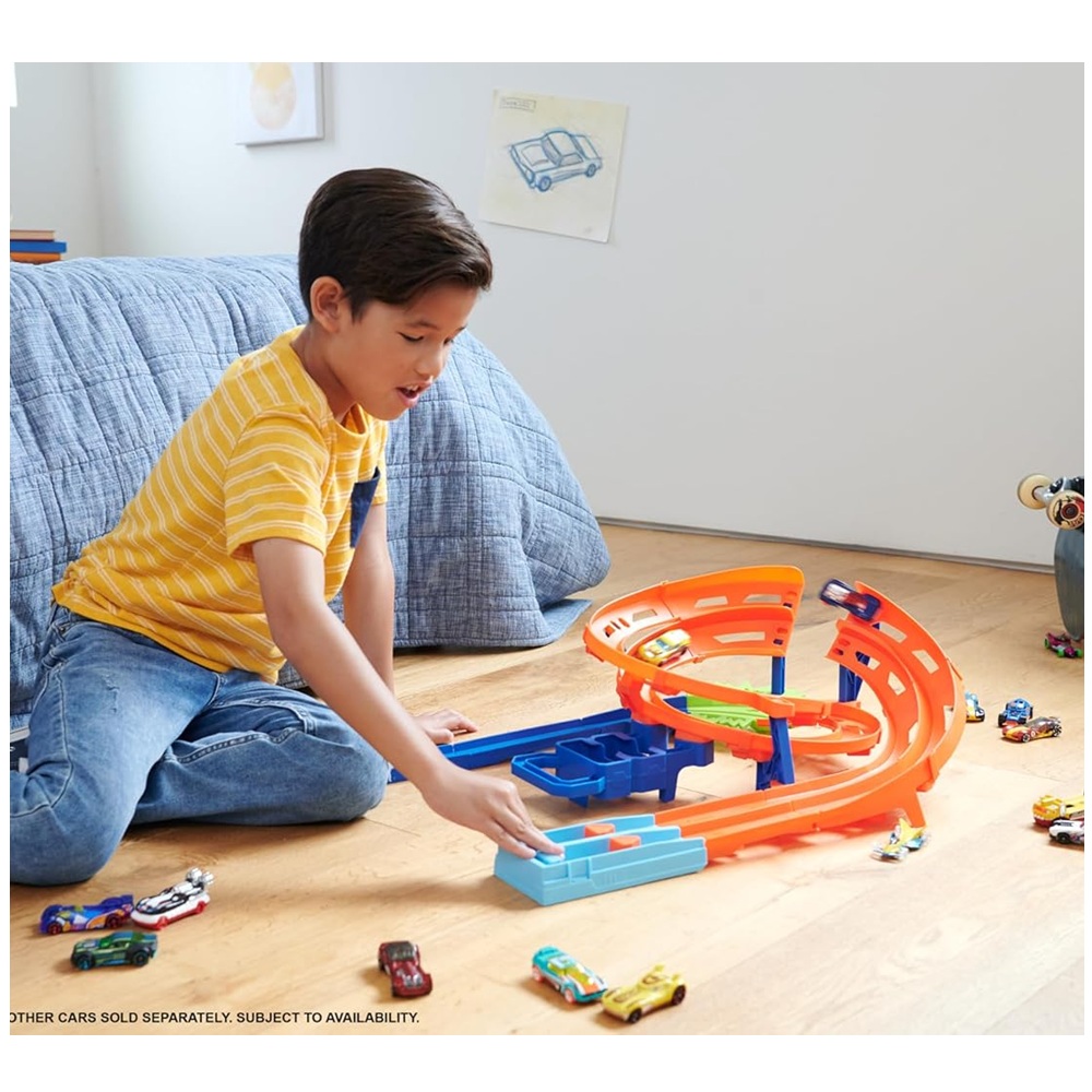 - Prepárate para carreras cara a cara, acrobacias y choques con Hot Wheels Whip Around Raceway.