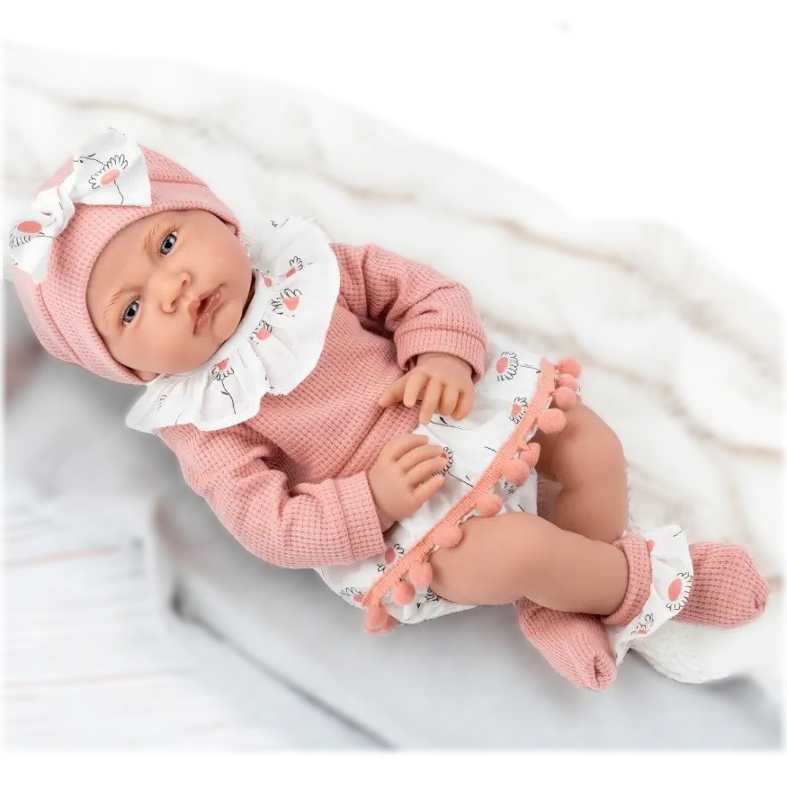¡Qué guapa está la recién nacida Carla con su pelele rosa con capucha! Lleva en su vestido complementos de suave borreguillo que le hacen una carita muy bonita. Carla viene con una toallita para tu hombro, para que puedas secarle la babita después de tomar el biberón. ¡Lleva a Carla contigo pero no olvides su biberón! Su cuerpo es de suave vinilo sexuado.