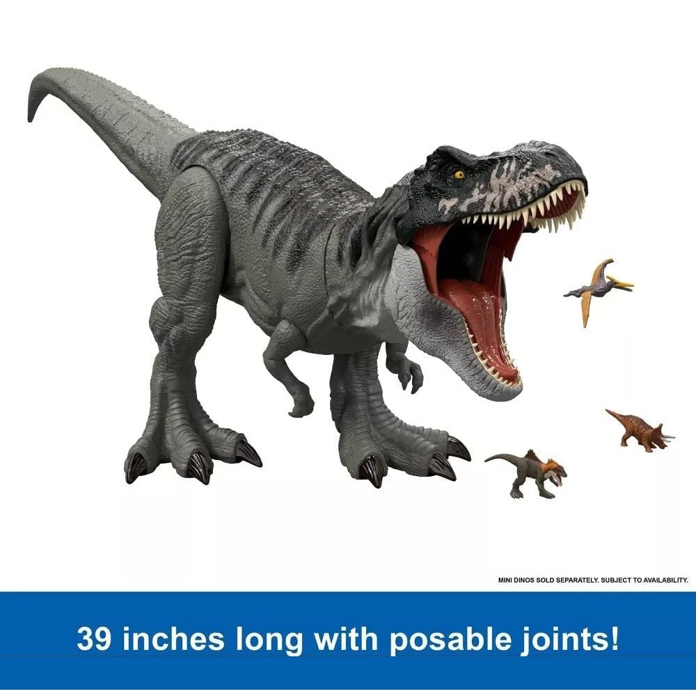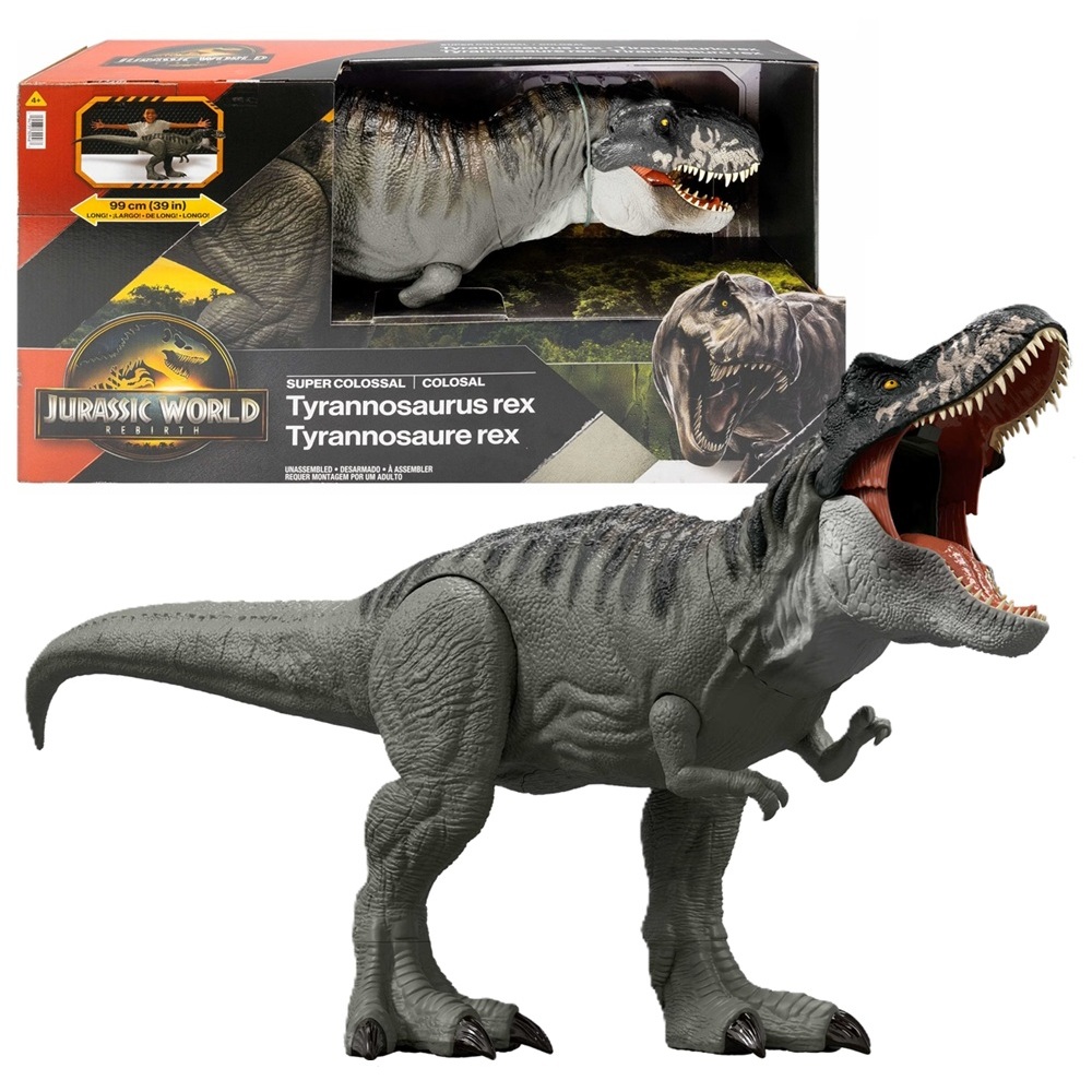 - ¡T. rex a gran escala! Vive la emoción de Jurassic World Rebirth en casa con esta enorme figura de acción de Tyrannosaurus rex de 99 cm.