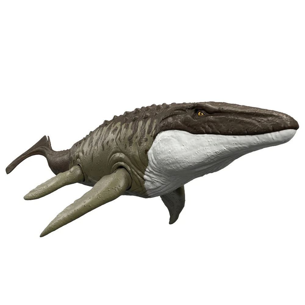 El Mosasaurus forma parte de una colección exclusiva que consta de 8 gigantescos dinosaurios: Allosaurus, Tyrannosaurus Rex, Mosasaurus, Spinosaurus, Quetzalcoatlus, Suchomimus, Pyroraptor y Atrociraptor. Cada uno de ellos presenta poses dinámicas, una construcción robusta y articulaciones flexibles, lo que permite recrear intensas y emocionantes escenas de juego.