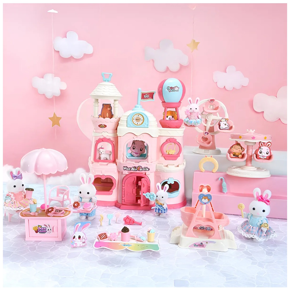 - Personajes Incluidos: Viene con 3 figuras de conejitos con vestuarios adorables, listas para ser las protagonistas del parque.