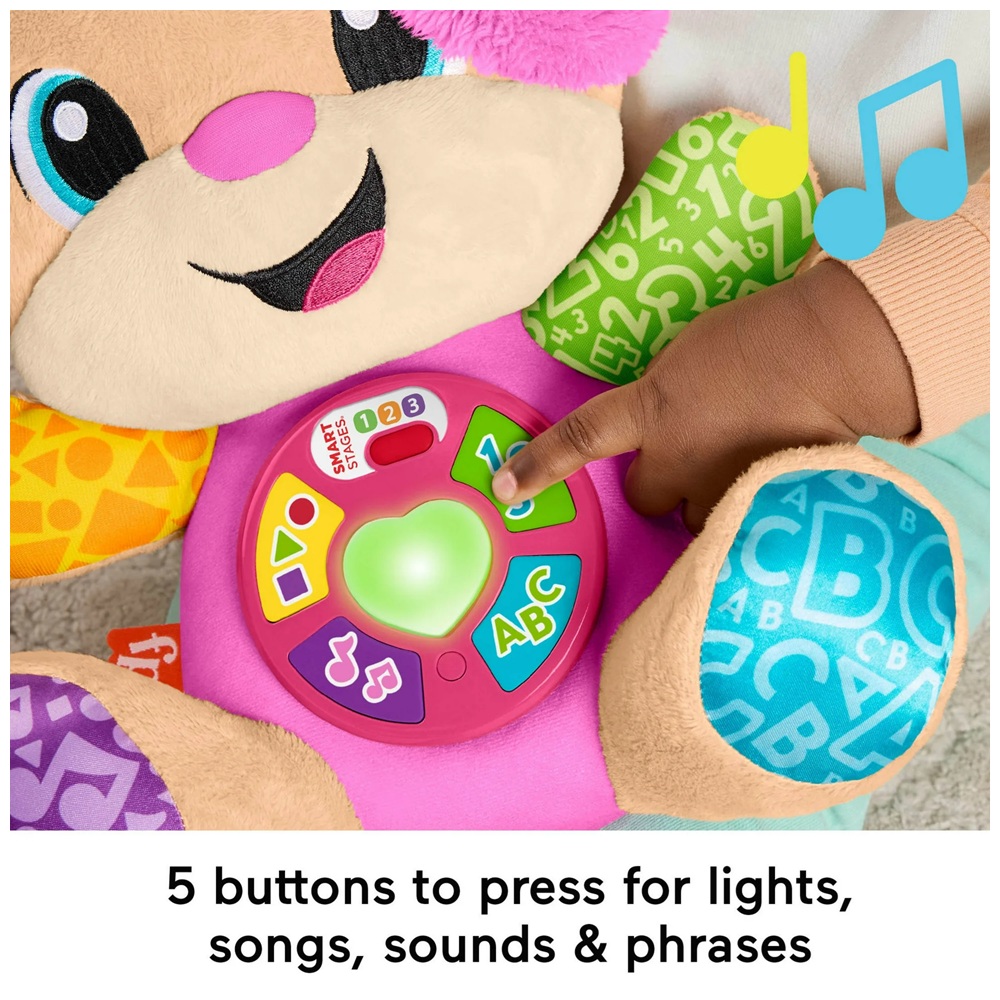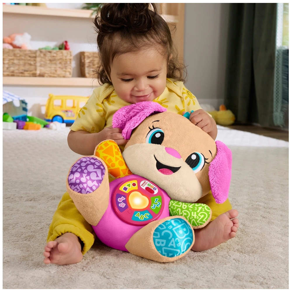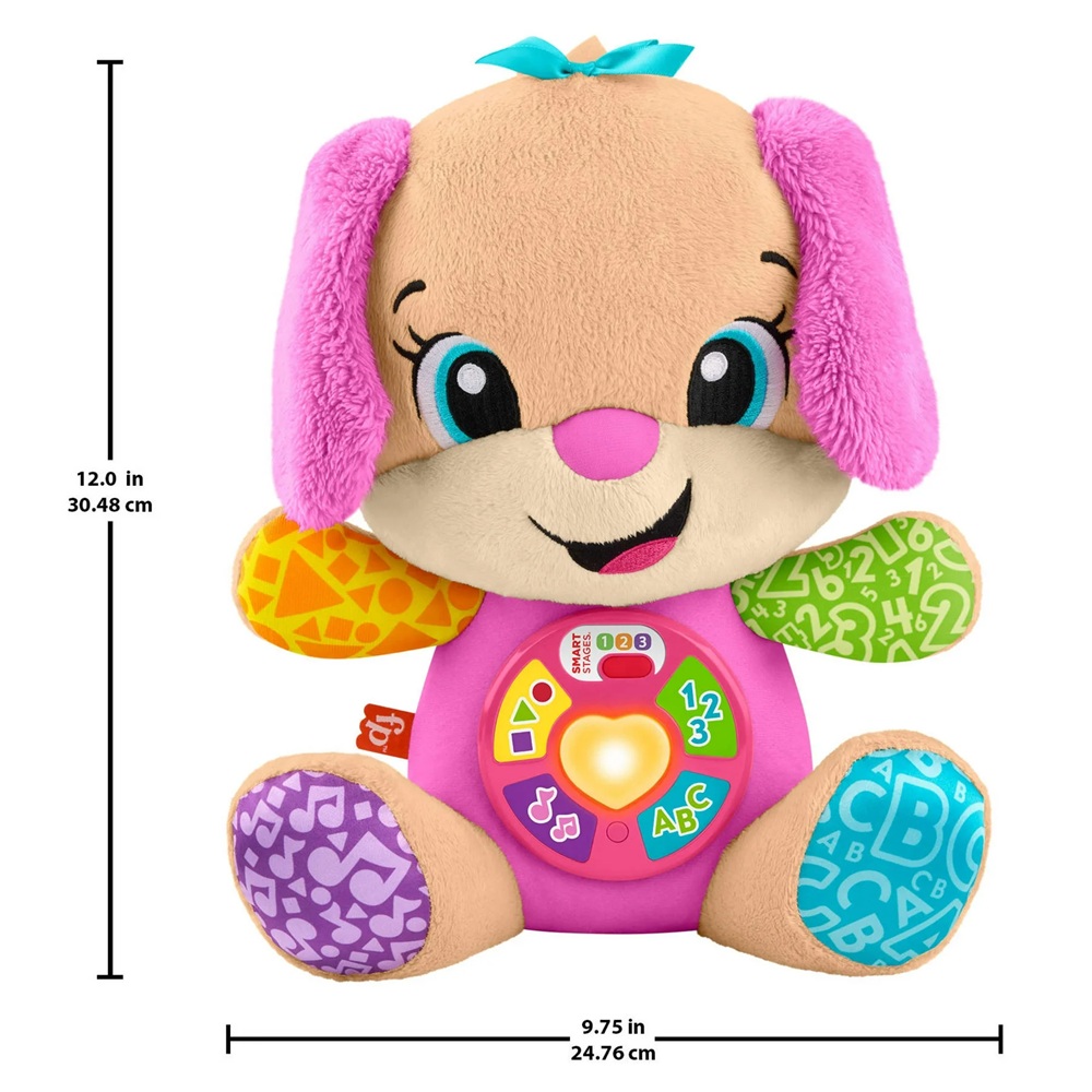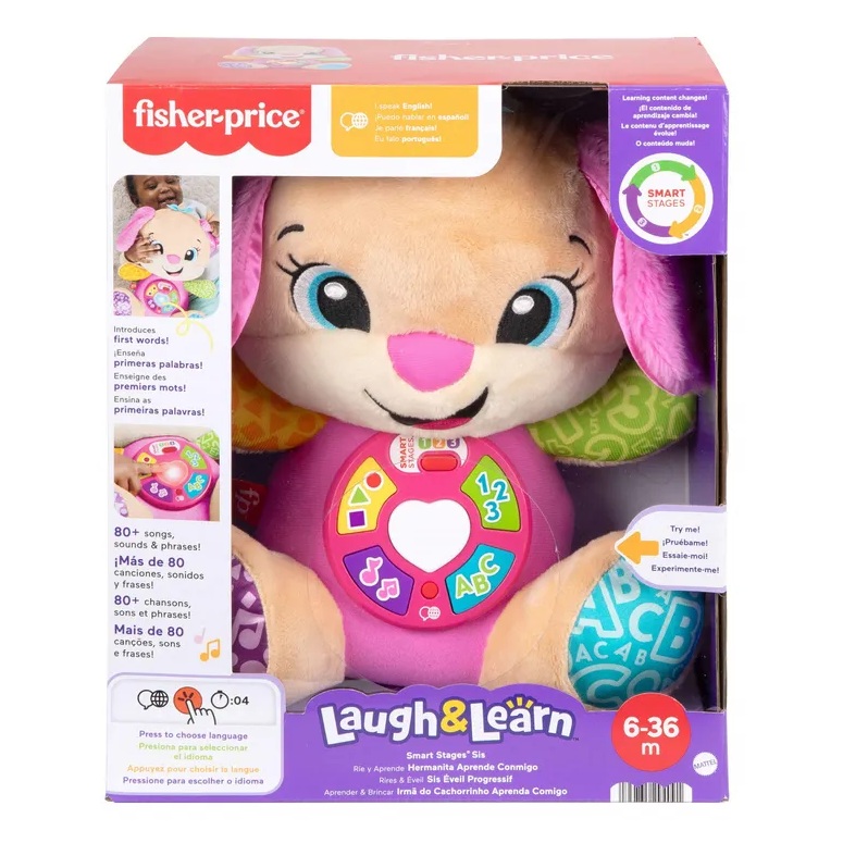 ¡La perrita más tierna y educativa ha llegado para acompañar a tu bebé en cada etapa! Fisher-Price Laugh & Learn Smart Stages Sis es un suave peluche interactivo que introduce a los pequeños en las primeras palabras, colores, formas, letras y más, mientras disfrutan de música, luz y aprendizaje sensorial.