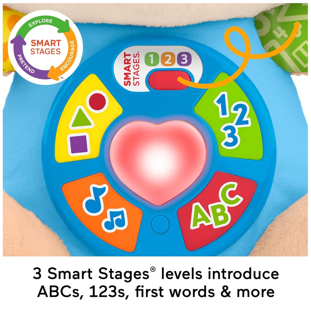 Gracias a su tecnología Smart Stages, ofrece 3 niveles de aprendizaje que se adaptan al crecimiento del niño, acompañándolo desde bebé hasta los primeros pasos de la infancia. ¡El compañero ideal para jugar, aprender y abrazar!